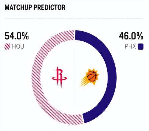 賽前,美媒ESPN對本場比賽進行了勝率預測,火箭隊勝率為54.0% ,太陽勝率則僅有46.0% ,處于劣勢。