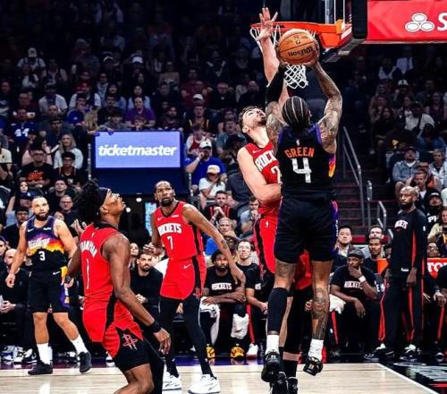 首節開打,杰倫-格林封蓋阿門-湯普森,兩人纏在一起,奠定了本場比賽基調,隨后杰倫-格林過掉阿門,迎著申京上籃命中,太陽開局16-5領先火箭。杜蘭特連續2投不中,火箭近5分鐘沒有得分(期間杜蘭特5中0、申京3中0),馬威跟進補籃太陽轟出一波18-0,已經領先到15分。杰倫-格林送上大帽,馬威連續打成2+1,太陽繼續轟出24-0,首節剛過半26-5已經領先火箭多達21分。杜蘭特急停跳投命中,打破得分荒,布克迎著伊森又打成2+1,得分已經上雙,太陽依舊保持20分領先優勢。伊森補籃打成2+1,謝潑德三分再中,首節打完,火箭21-37落后太陽。
