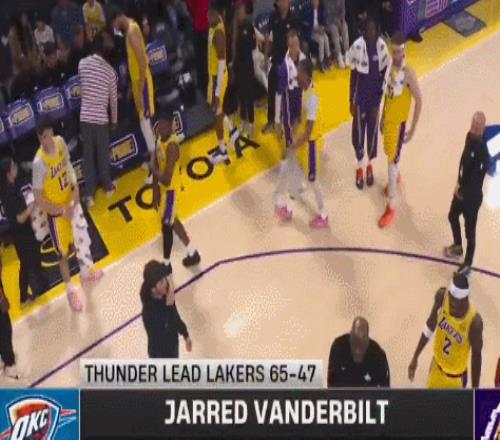 所以能看到湖人的首發陣容為肯納德+拉拉維亞+艾頓+八村塁+蒂米;對面的雷霆則是亞歷山大+米切爾+多特+切特+哈騰。