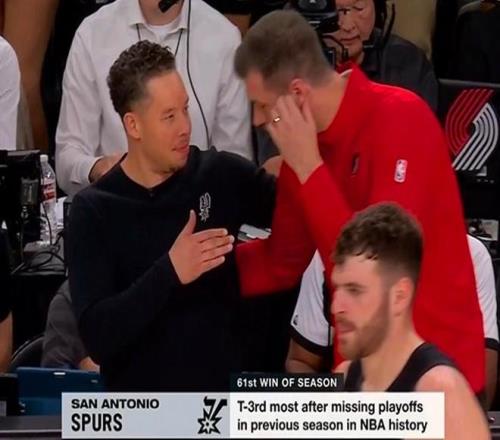 并且在常規(guī)賽還剩2場的情況下,馬刺隊61場勝利再度創(chuàng)造歷史紀(jì)錄,并列前個賽季無緣季后賽后第二年勝場數(shù)歷史第三多。
