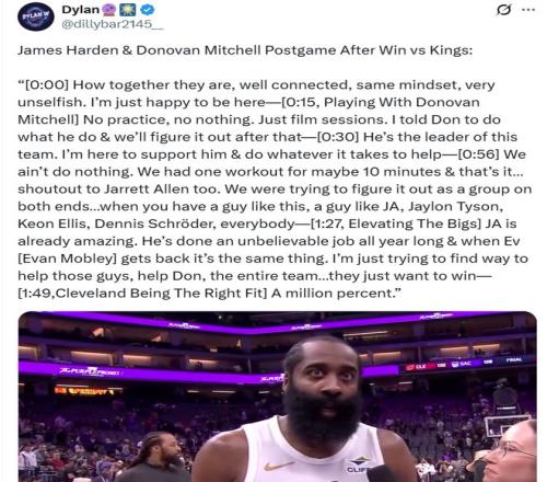 相比于擊敗聯盟倒數第一的國王隊,更加讓騎士隊開心的是哈登無縫融入球隊,首秀低開高走拯救新東家。