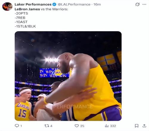 北京時間2月8日,湖人105-99擊敗勇士拿到三連勝。這場比賽湖人這邊缺少了東契奇,勇士那邊缺少了庫里,雙方的核心都缺席,湖人第二巨頭里夫斯未能延續上一場的炸裂表現,41歲的勒布朗成為此役最耀眼的星,他拿到20+10+7的全面數據幫助湖人拿下勝利。