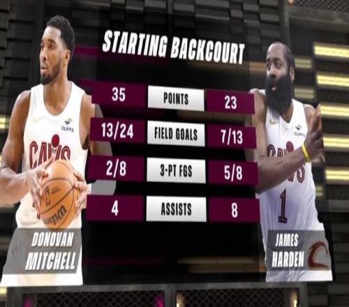 哈登騎士首秀先抑后揚,上半場6中1,下半場7中6包括關鍵時刻連續轟進兩記三分球,最終全場出戰約32分鐘,投籃13中7(三分8中5),罰球4中4貢獻23分2板8助1斷,帶隊132-126擊敗國王。