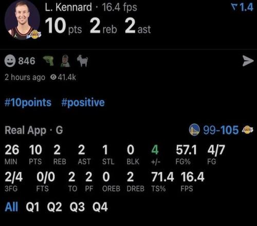 用 文森特+一個次輪簽換來的肯納德,此役完成了湖人生涯首秀,替補出戰(zhàn)約26分鐘,投籃7中4,其中三分4中2貢獻(xiàn)10分2板2助1斷,正負(fù)值+4。