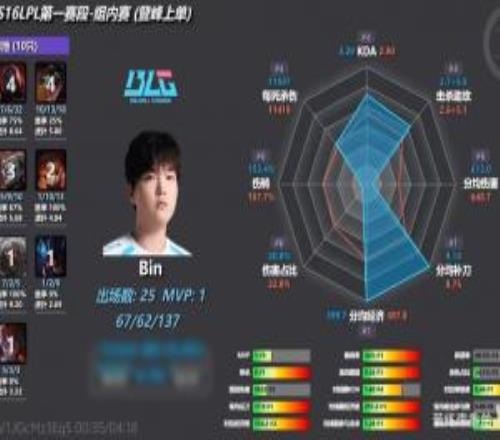 吸血鬼型上單Bin第一賽段數(shù)據(jù)雷達(dá)圖:吃最多的經(jīng)濟(jì)打最少的傷害!