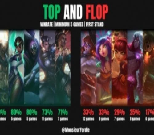 電競體育3月24報道 外媒統計26先鋒賽英雄勝負率排行(出場大于5場),具體如下: