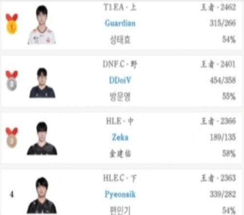 除了已經(jīng)登頂韓服第一的青訓(xùn)上單,T1青訓(xùn)還有一名韓服第68名的上單和韓服第24名的輔助。