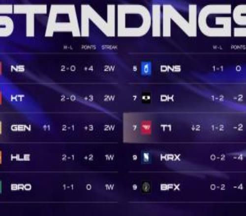 T1在LCK常規賽的排名暫時來到第七,與DK并列。