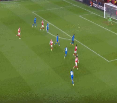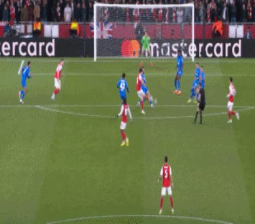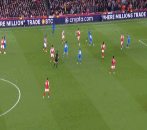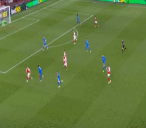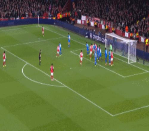 第8分鐘,薩卡開出角球,加布里埃爾頂在肩膀上出了底線