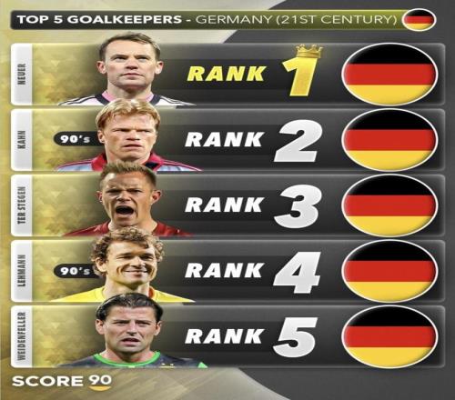 諾伊爾第1很穩,卡恩第2能立住,特爾施特根第3也說得通。真正能聊的,是萊曼和魏登費勒的位置,以及第5是不是還能換成別人。換句話說,這不是一份瞎排的榜單,但也不是一份完全沒有爭議的榜單。