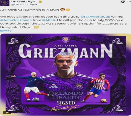 官方:奧蘭多城宣布和馬競就格列茲曼的交易達(dá)成了協(xié)議,這名球星將在今年7月份正式登陸MLS,交易為自由轉(zhuǎn)會,法國人將簽下一份2028年到期的2年合同,附帶延長一年條款。