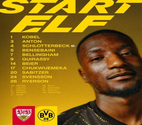 多特客戰斯圖加特:吉拉西、丘庫埃梅卡、喬布貝林厄姆首發