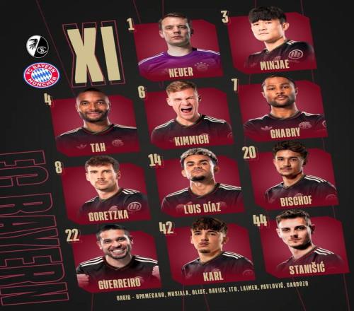 弗賴堡vs拜仁:迪亞斯、格納布里首發(fā),凱恩缺陣,金玟哉出戰(zhàn)