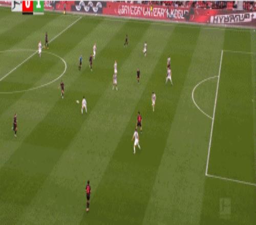 第44分鐘,格里馬爾多冷射完成雙響,勒沃庫森2-3
