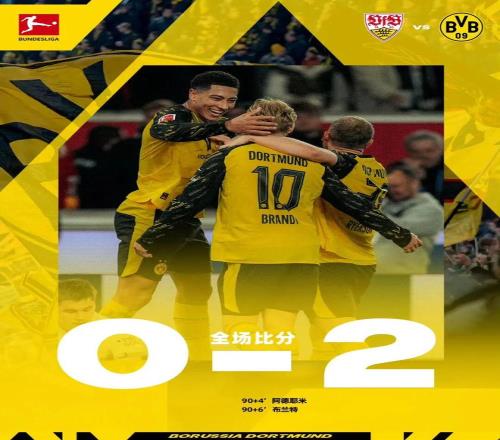北京時間4月5日凌晨0點30分,斯圖加特坐鎮主場迎戰多特蒙德。上半場比賽,施蒂勒、菲里希射門造險,科貝爾力保球門不失,半場雙方均無建樹。易邊再戰,雙方有威脅進攻不多,補時階段,阿德耶米門前推射破門,布蘭特爆射再下一城。最終,多特蒙德客場2比0險勝斯圖加特,豪取德甲4連勝。