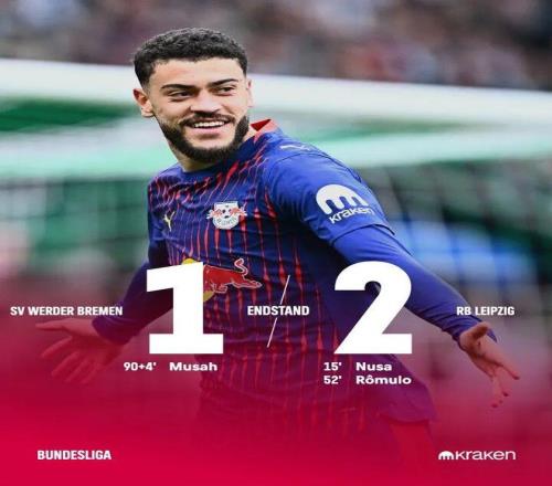 北京時間4月4日晚9點30分,云達不萊梅主場迎戰RB萊比錫。上半場比賽,努薩禁區弧頂出低射打破僵局。易邊再戰,羅慕洛殺入禁區勁射再下一城,穆薩頂著兩名防守隊員低射扳回一城。最終,RB萊比錫客場2比1力克云達不萊梅,近5輪德甲比賽取得4勝。