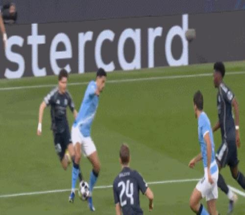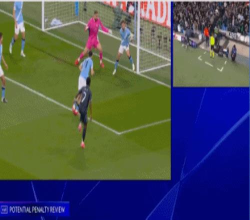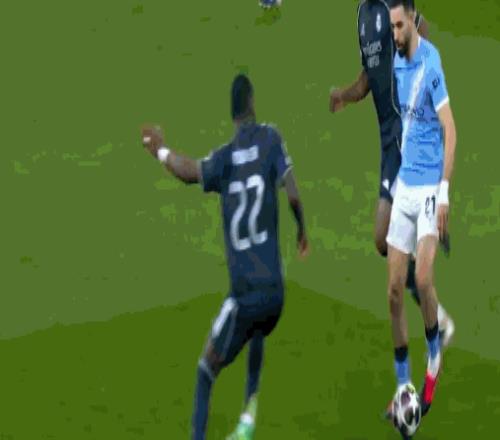 第22分鐘,B席手球紅點,維尼修斯點射,皇馬總比分4-0曼城