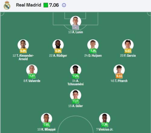 后防線上,庫爾圖瓦因傷缺陣至少一個月,盧寧將首發出戰,這將是烏克蘭門將第四次出戰馬德里德比。呂迪格和懷森的中衛組合已連續三場首發,特倫特鎮守右路,傷愈歸來的卡雷拉斯出任左后衛。中場方面,巴爾韋德、楚阿梅尼、皮塔奇、居萊爾預計首發,貝林厄姆可能替補待命。