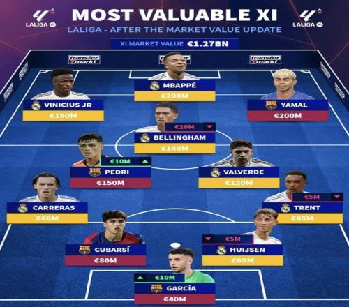 這組前鋒的個人能力是整套陣容里最狠的一檔。姆巴佩本賽季西甲23場23球4助,已經把中路終結點的位置坐穩;亞馬爾24場14球9助,進球和最后一傳都在頂級區間;維尼修斯27場9球5助,聯賽數據不如前兩人那么猛,但左路突破、推進和單點爆破還是最有威脅的武器之一。