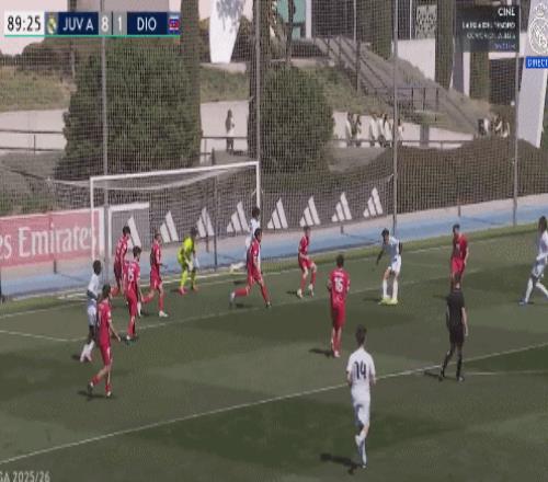 第78分鐘,皇馬U19左路發起進攻,亂戰之中,恩佐-阿爾維斯近距離右腳抽射破門,球隊7-1領先。