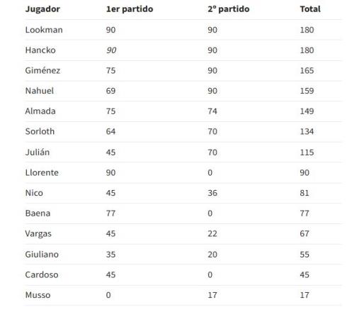 長途飛行也是個問題。例如,馬競原本在上午訓(xùn)練,但周四改到了下午,以便讓六名阿根廷球員能夠歸隊(duì)。他們在布宜諾斯艾利斯參加了對陣毛里塔尼亞和贊比亞的兩場友誼賽,其中阿爾瓦雷斯(115分鐘)、納韋爾(159分鐘)和阿爾馬達(dá)(149分鐘)的出場時間都超過了100分鐘。巴爾加斯在美國和墨西哥之間奔波,卡多索則在美國,他們也都不得不跨越大西洋。