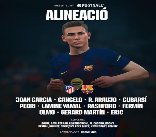 巴塞羅那首發:13-霍安-加西亞、24-埃里克-加西亞、4-阿勞霍、5-庫巴西、18-赫拉德-馬丁、2-坎塞洛、8-佩德里、16-費爾明-洛佩斯、20-奧爾莫、14-拉什福德、10-亞馬爾