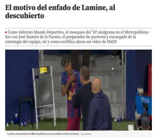 萊萬在第87分鐘打進絕殺進球,巴薩全隊慶祝,亞馬爾卻沒有參與。比賽結束之后,亞馬爾帶著怒氣離場,弗里克試圖和亞馬爾打招呼,也遭到亞馬爾的無視。亞馬爾回過頭,手指后方,再次表達對助教德拉富恩特的不滿。