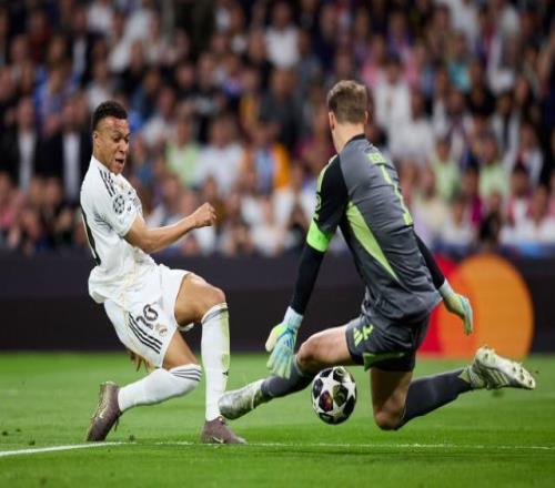 不過即便有失誤,諾伊爾依然在本場比賽首發出戰。而這一次,他也沒有讓主教練和隊友們失望。開場之后,拜仁反客為主,萊默爾的遠射、奧利塞的一條龍突破和任意球射門以及于帕梅卡諾的門前捅射都極具威脅,只可惜未能轉化為進球。第16分鐘,姆巴佩突入禁區射門被諾伊爾神勇化解。隨后維尼修斯的兜射和阿諾德搶斷后的射門也都被諾伊爾擋出。第28分鐘,姆巴佩殺入禁區的小角度射門依然無法逾越諾伊爾的十指關。第34分鐘,維尼修斯反擊中的射門也被諾伊爾穩穩撲住。