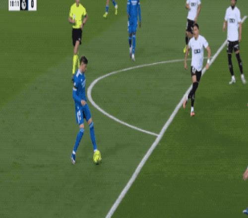 開場之后,皇馬并沒有迅速大舉壓上,瓦倫西亞還是打出了一些不錯的配合,并沒有被動防守。