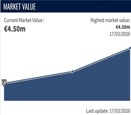 科莫托的快速成長也讓他的身價水漲船高,去年12月時,德轉給出的評估身價為250萬歐元,而到了今年3月,他的身價已經上漲到450萬歐元。雖然這一價格并沒有多驚艷,但他是意乙迄今為止唯一1位能夠在如此短時間內身價顯著增長的18歲以下球員。