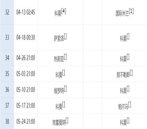 下一輪比賽,科莫就將在主場對陣國米,之后第35輪,他們還將在主場迎戰(zhàn)那不勒斯,這2場比賽的結(jié)果,將決定科莫的命運。作為本賽季意甲大黑馬,科莫的表現(xiàn)給球迷帶來了很大的驚喜,不過如果輸?shù)暨@2場惡戰(zhàn),他們很可能無緣前四。