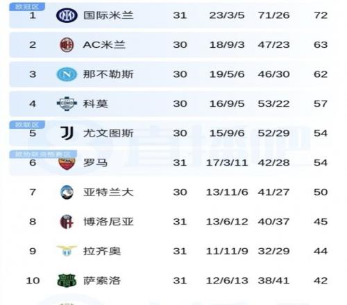 意甲第31輪,國(guó)米5-2輕取羅馬,終結(jié)連勝3輪不勝,先賽9分領(lǐng)跑。羅馬先賽仍54分,距離歐冠區(qū)3分。米蘭本輪會(huì)對(duì)上那不勒斯。