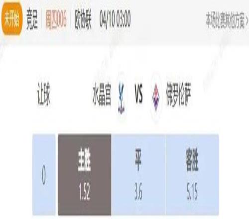 水晶宮參加的12場歐協聯比賽中有10場輸掉了數據,最近5場全部輸指,甚至6個主場比賽也5次輸掉數據,要知道他們輸指的對手不過是AEK拉納卡、古比斯、日林斯基、腓特烈斯塔這樣的小聯賽球隊,如今面對意甲球隊佛羅倫薩,我相信水晶宮的熱度不至于太高。