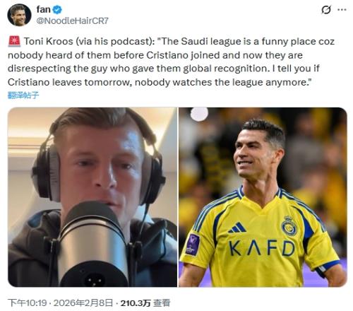 克羅斯:沙特聯賽是個奇怪的現象。在C羅去之前,幾乎沒人聽說過它。是C羅讓沙特聯名揚世界,而現在他們卻對C羅缺乏尊重。如果C羅明天就離開沙特,這個聯賽將失去所有魅力。沒有C羅,根本沒人會看沙特聯賽。