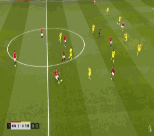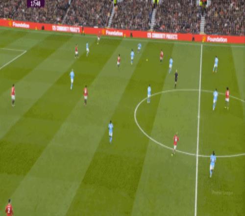 也就是我們在復盤中提到的,阿瑪德-迪亞洛斜向進入中路的這條全新線路: