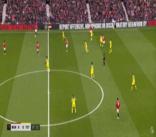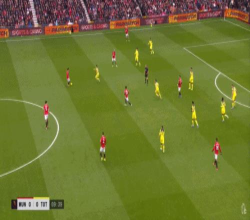 寬泛地說,你也可以認為曼聯在有球時轉變為了三后衛,但除了阿瑪德-迪亞洛并不深度和嚴格參與防守以外,在對陣熱刺的這場比賽,達洛特的上前進攻次數也不少: