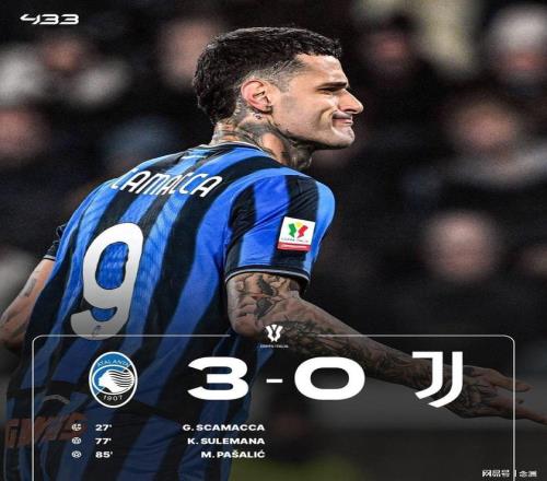 意大利杯1/4決賽,尤文圖斯0-3負于亞特蘭大,無緣四強。小孔塞桑抽射中楣,布雷默送點,斯卡馬卡點射首開記錄,蘇萊馬納替補建功,帕薩利奇破門。