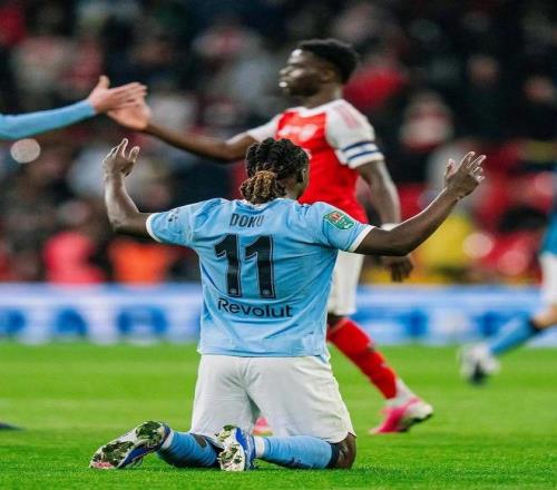僅僅過了4分鐘,阿森納的球門再度失守,努內斯右路下底傳中,奧賴利門前頭球上演梅開二度,曼城將領先的優勢擴大到了2球,第78分鐘殺到前場的卡拉菲奧里在藍月軍團的禁區內完成了一腳凌空抽射,運氣不佳皮球被遠側立柱擋出。