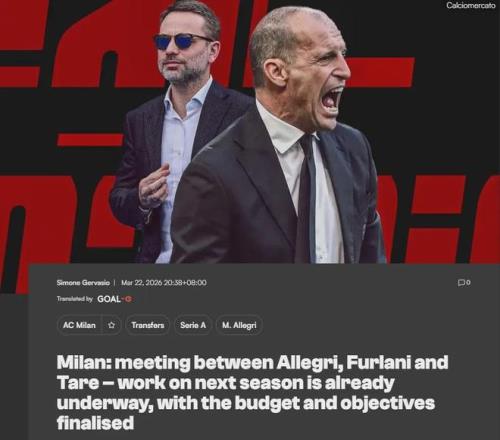 意大利天空體育消息,阿萊格里和弗拉尼、塔雷在米蘭總部進行了一次會談,以探討未來問題。