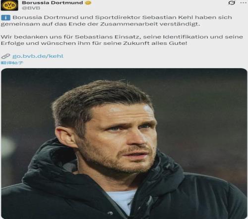 官方:多特蒙德宣布和體育總監凱爾就結束合作關系達成了一致。