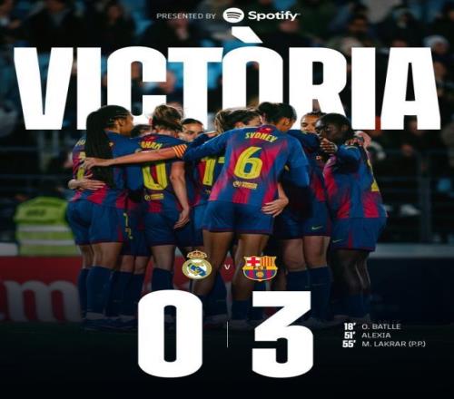 西班牙女足超級聯賽第24輪比賽,巴薩女足客場3比0完勝皇馬女足,巴特勒和普特拉斯分別建功,皇馬女足打進一粒烏龍球。此役過后,巴薩女足在聯賽積分榜上繼續擴大領先優勢,目前已經領先對方13分。近一周巴薩女足和皇馬女足將連續對陣三次,其中包括兩回合歐冠1/4決賽和本場聯賽較量。首回合歐冠1/4決賽,巴薩女足6比2大勝皇馬女足,此役再次3比0完勝。雙方之間的歐冠1/4決賽次回合將于4月3日進行。