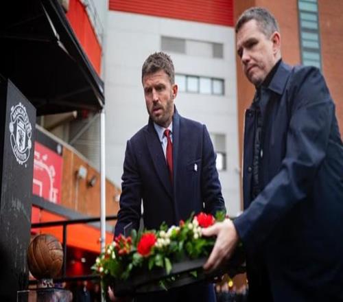 主教練邁克爾-卡里克與女足主帥馬克-斯金納,在慕尼黑時(shí)鐘下擺上花圈,隨后隊(duì)長(zhǎng)布魯諾-費(fèi)爾南德斯與瑪雅-勒-蒂西耶也依次獻(xiàn)花,全場(chǎng)肅立默哀。