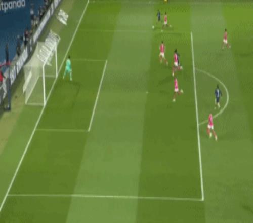 第23分鐘,李剛仁右路加速突破傳中,孔巴薩解圍不遠,登貝萊原地擺腿,打出一記無解的凌空抽射,皮球直掛死角,雷斯特鞭長莫及,大巴黎打破僵局,1-0!