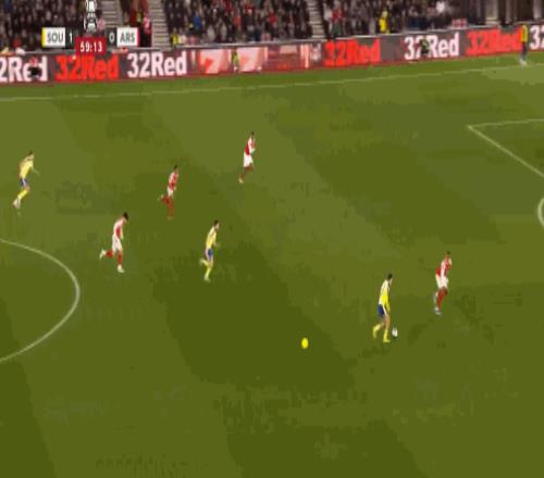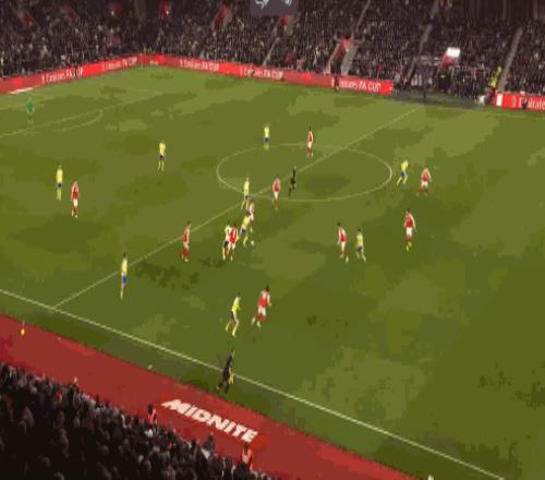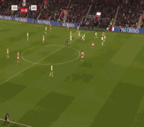 第61分鐘,阿森納后場出球失誤,費洛斯射門高出