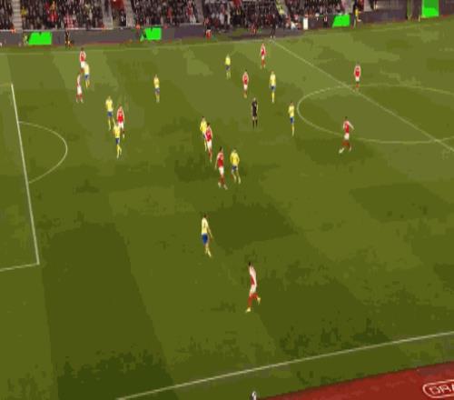 第10分鐘,阿森納角球精彩配合,馬丁內利射門被頂出