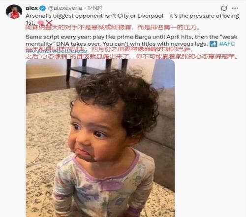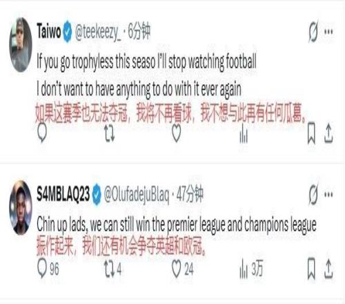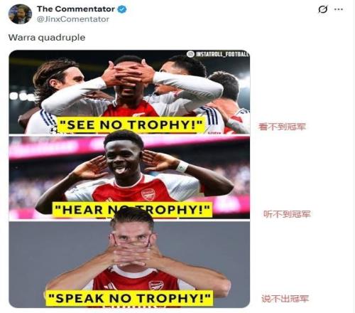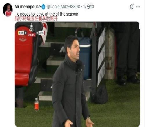 此外,部分阿森納球迷也再次質疑主帥阿爾特塔:“本賽季坐擁如此豪華的陣容,卻連丟2冠,你究竟要什么時候才會承擔責任!”:“阿爾特塔請在賽季結束后離開!”:“阿爾特塔的氣質,注定了他的球隊,永遠都與獎杯遙不可及!”