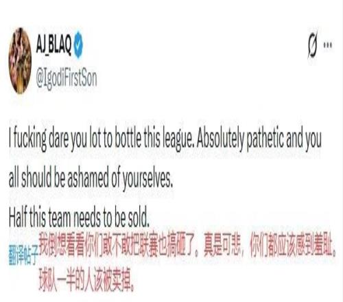 “真是可悲,你們都應該感到羞恥!我倒想看看,阿爾特塔敢不敢把聯賽也搞砸了!”:“如果這賽季再次無法奪冠,我發誓再也不看球,也不想再與阿森納有任何瓜葛!”