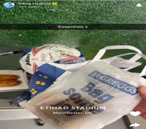 賽后,哈蘭德還犒勞了自己一份格雷格斯(Greggs)外賣。他在快拍上分享了自己賽后餐食的照片,配文為:“必備品x?!?/p>