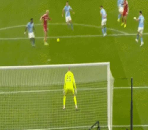 第92分鐘,阿利松禁區內撲倒努內斯,裁判判罰點球,隨后哈蘭德操刀命中,完成傳射建功好戲,曼城反超比分,2-1!