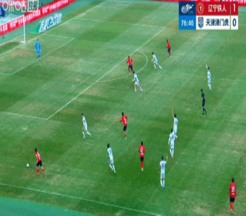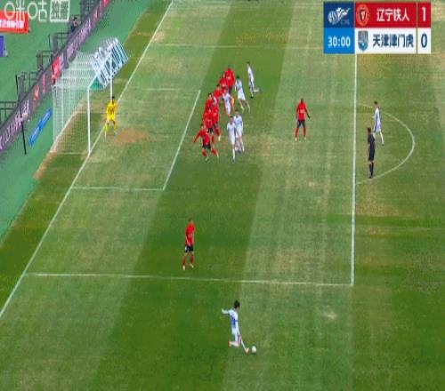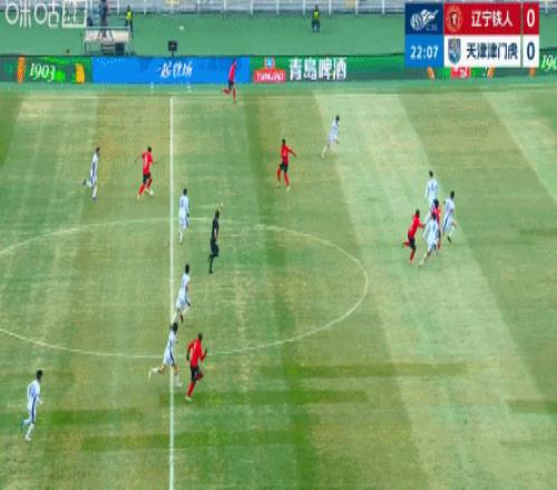 第16分鐘,遼寧鐵人利用定位球制造威脅,費利佩搶點頭槌,津門虎門將齊雨熙神勇救險。